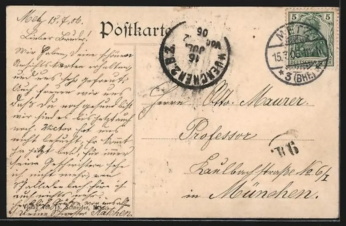 alte Ansichtskarte, gelaufen 1906, guter Zustand
