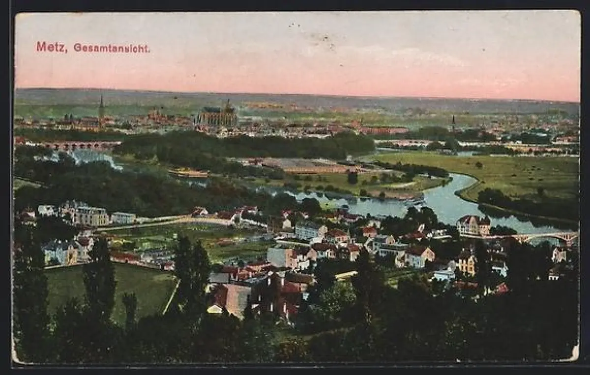AK Metz, Vue d`ensemble de la ville et de la rivière serpentine