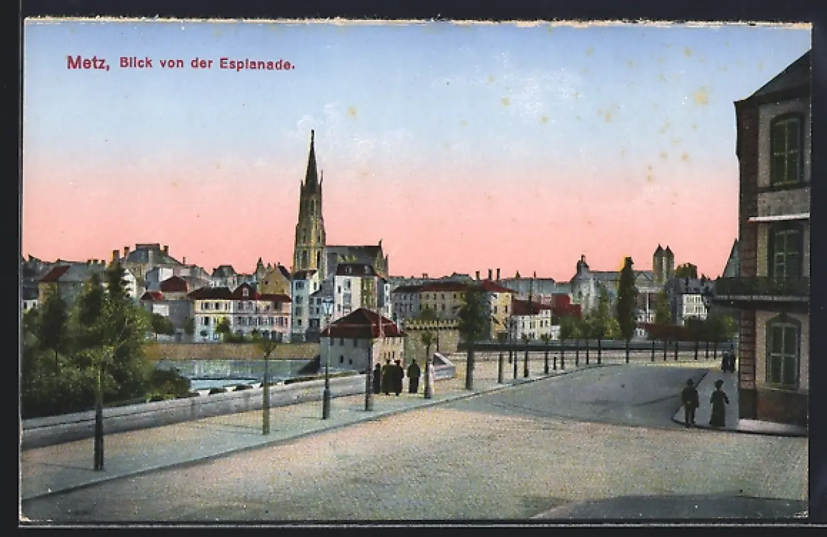 AK Metz, Vue de l`Esplanade avec panorama urbain et flèche de l`église