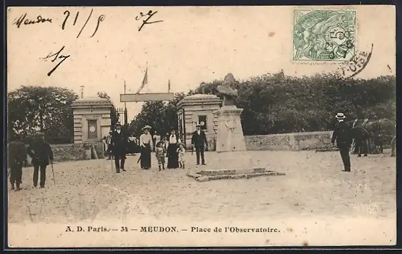 AK Meudon, Place de l`Observatoire avec des passants et une statue