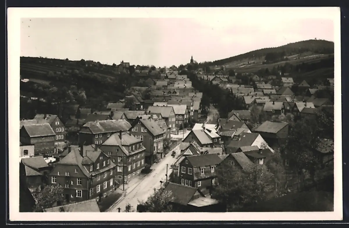 AK Meuselbach /Thür. Wald, Gesamtansicht mit Kirche