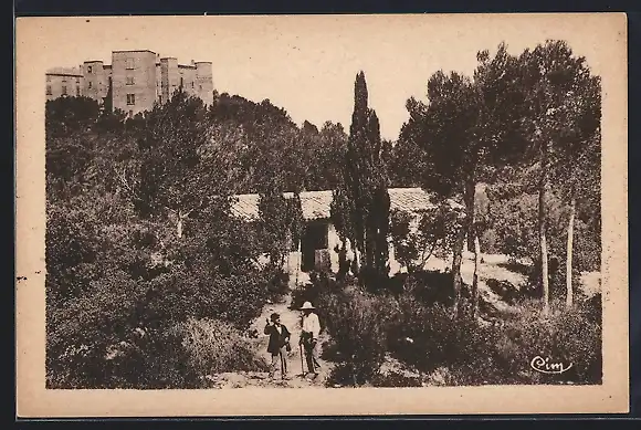 AK Meyrargues, Chapelle de la Mère de Dieu et vue sur le château dans la forêt