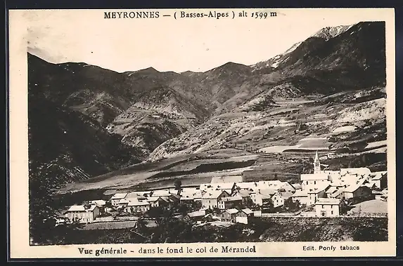 AK Meyronnes /Basses-Alpes, Vue generale dans le fond le col de Merandol