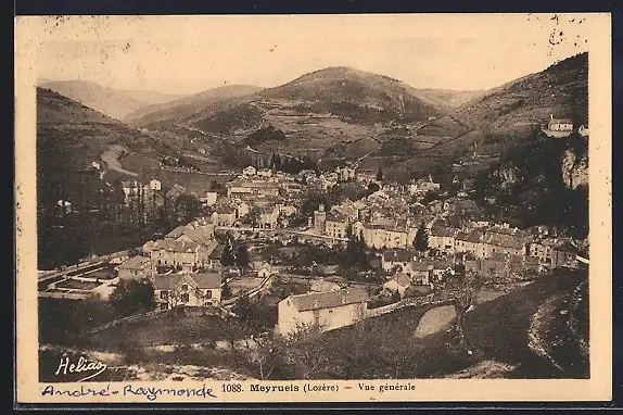 AK Meyrueis, Vue générale du village et des collines environnantes