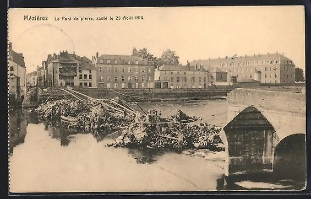 AK Mézières, Le Pont de pierre, sauté le 25 Août 1914