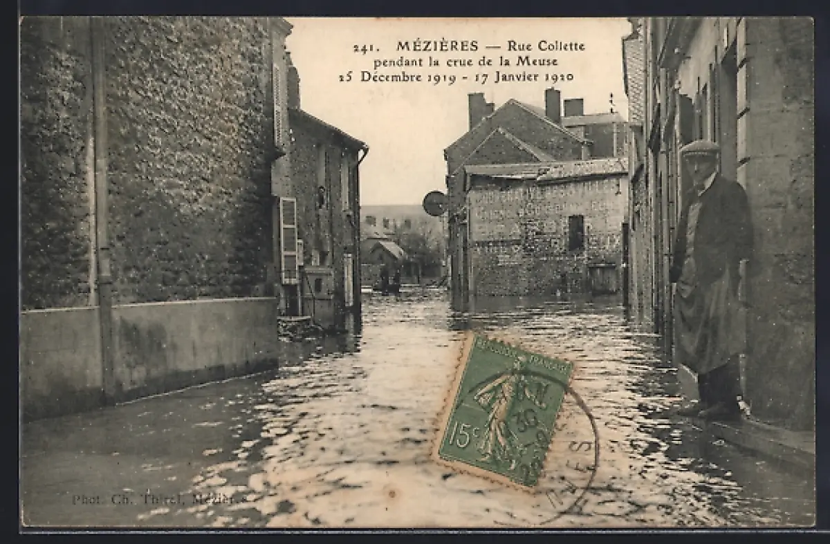 AK Mézières, Rue Collette pendant la crue de la Meuse 25 Décembre 1919, 17 Janvier 1920