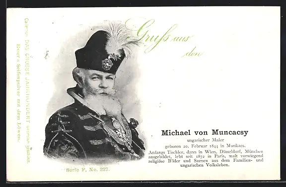 AK Michael von Muncacsy, Portrait des ungarischen Malers in seiner Tracht