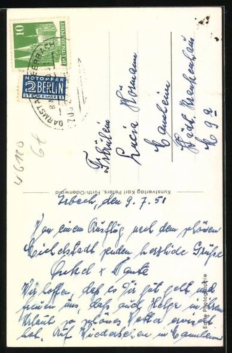 alte Ansichtskarte, gelaufen 1951, guter Zustand