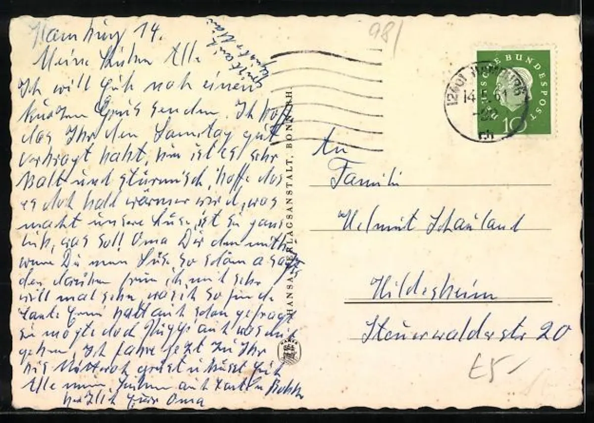 alte Ansichtskarte, gelaufen 1961, Eckknicke re., guter Zustand