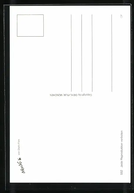 Personenbezogene Daten auf der Rückseite der Karte wurden durch blauen Textmarker unkenntlich gemacht. Die blauen Stellen sind auf die Vorderseite durchgeweicht und wirken sich negativ auf das Postkartenfoto aus