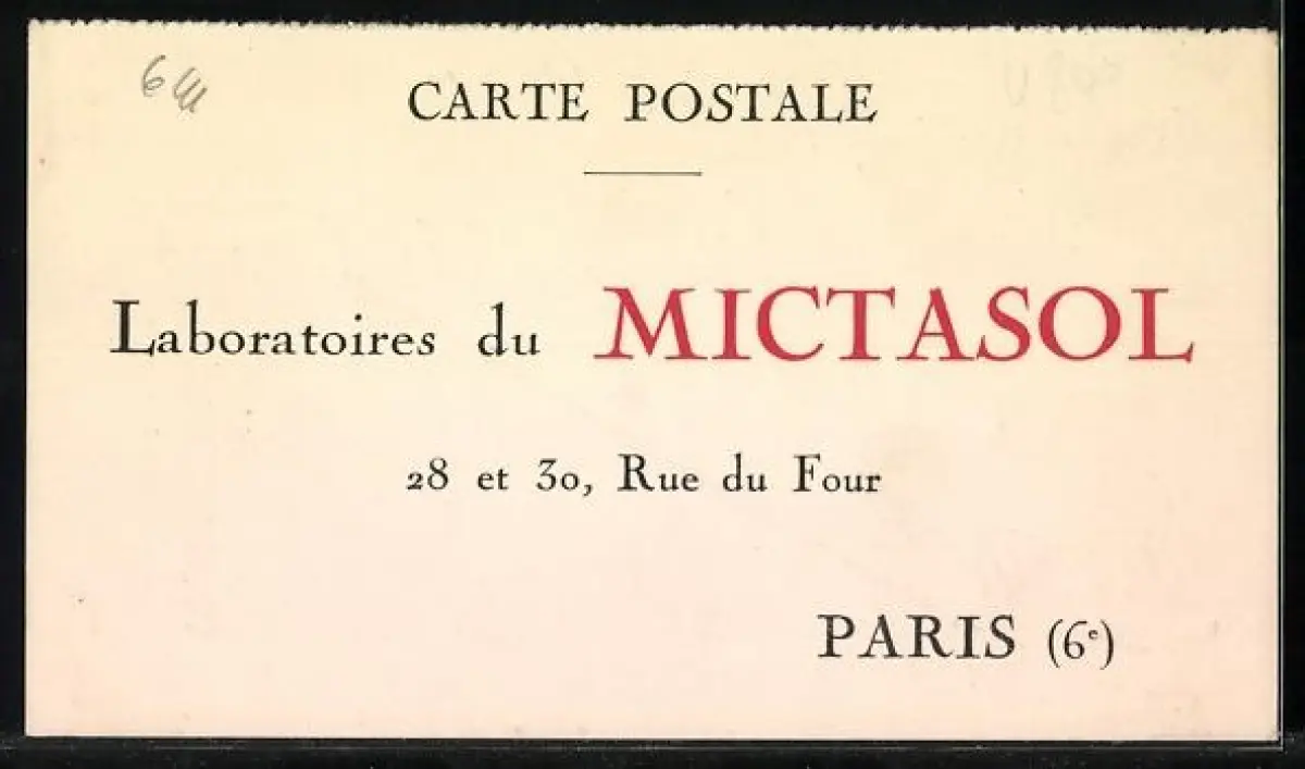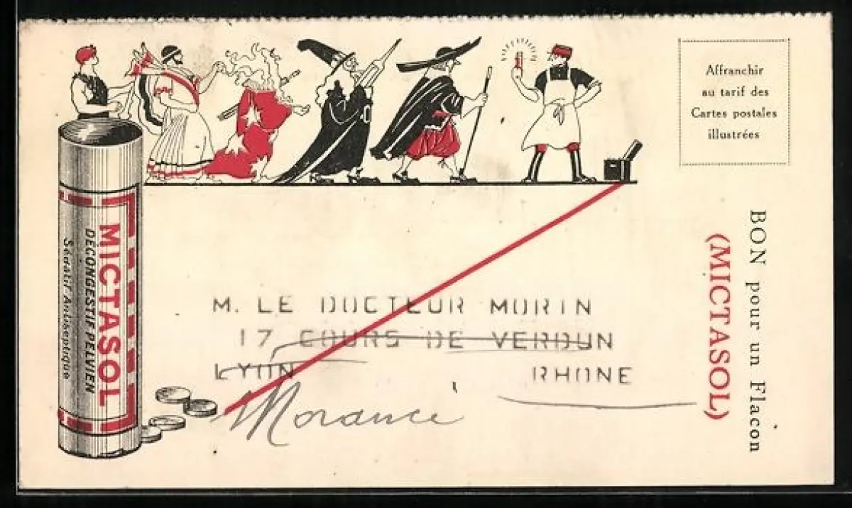 AK Mictasol, Décongestif Pelvien, Reklame, Menschen stehen Schlange, um das Medikament zu erhalten