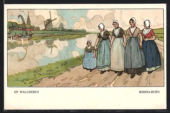 AK Middelburg, Frauen in Trachten auf der Strasse