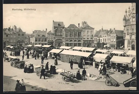 AK Middelburg, Marktdag, Marktszene mit Verkaufständen