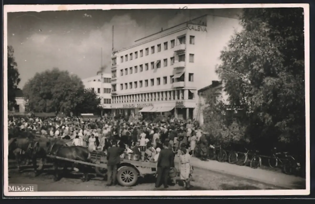 AK Mikkeli, Strassenpartie mit Menschenansammlung