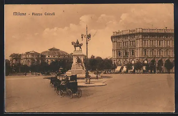 AK Milano, Foro Bonaparte col Monumento a Garibaldi, Strassenbahn