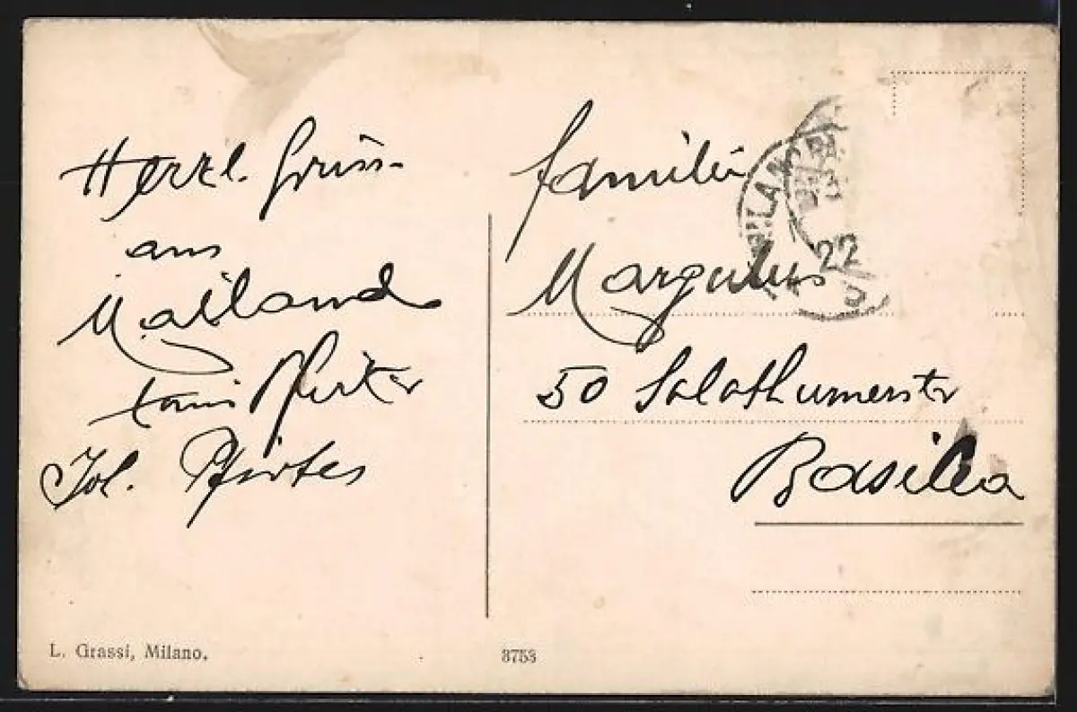 alte Ansichtskarte, gelaufen, Briefmarke entfernt, rückseitig Oberflächenschaden, Bugspur links oben, sonst guter Zustand