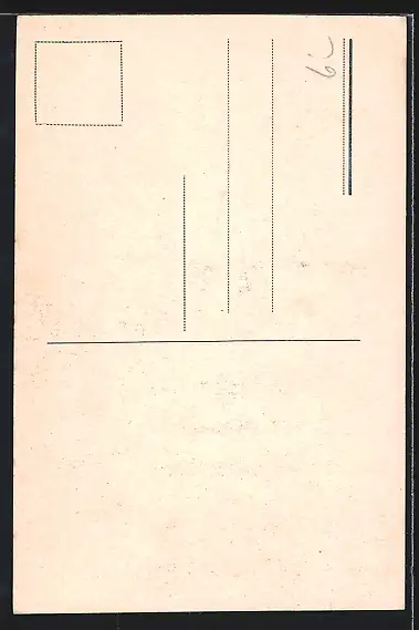 Personenbezogene Daten auf der Rückseite der Karte wurden durch blauen Textmarker unkenntlich gemacht. Die blauen Stellen sind auf die Vorderseite durchgeweicht und wirken sich negativ auf das Postkartenfoto aus