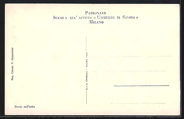 AK Milano, Patronato-Scuola all`Aperto Umberto di Savoia-Siesta sull`erba