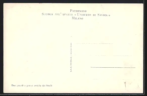 AK Milano, Patronato-Scuola all`Aperto Umberto di Savoia-due grandi e grosse amiche dei bimbi