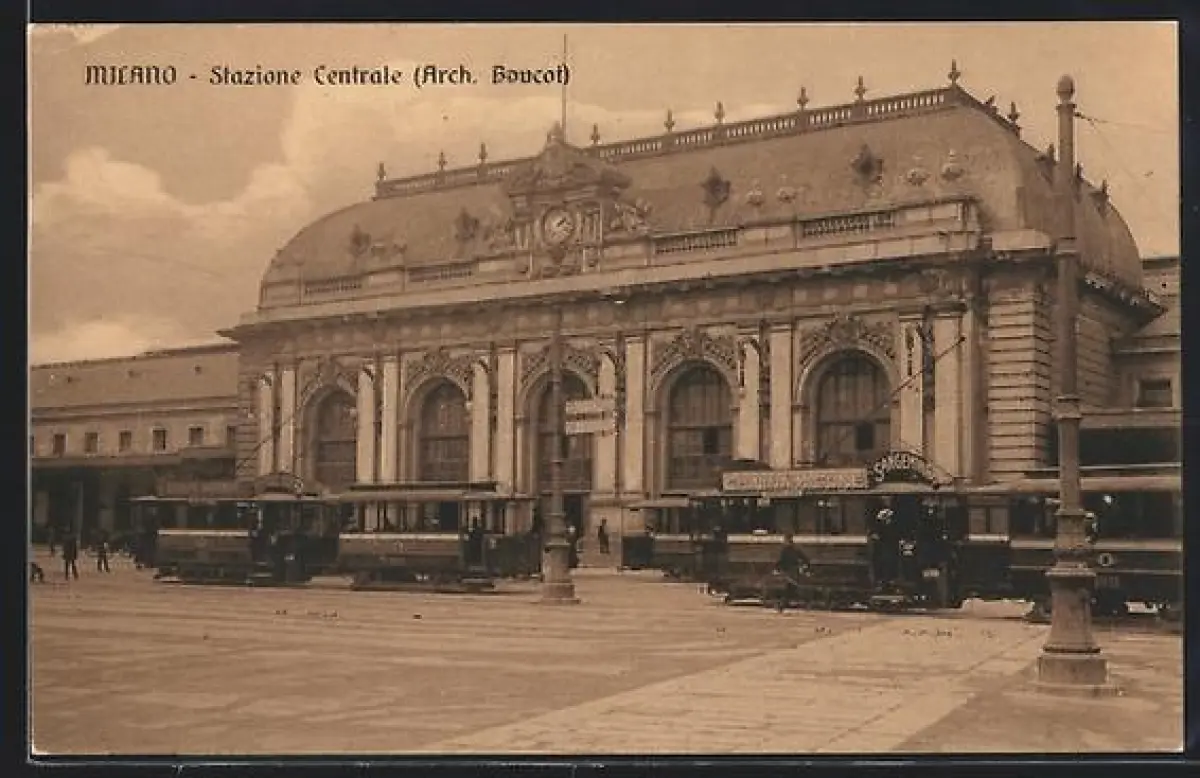 AK Milano, Stazione Centrale, Bahnhof, Strassenbahn