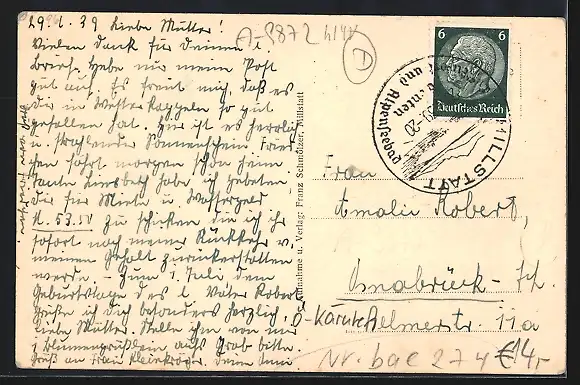 alte Ansichtskarte, gelaufen 1939, guter Zustand