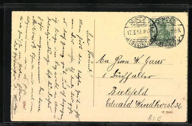 alte Ansichtskarte, gelaufen 1912, guter Zustand