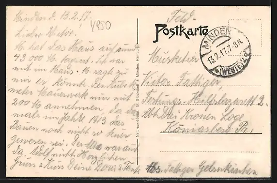 alte Ansichtskarte, gelaufen 1917, guter Zustand