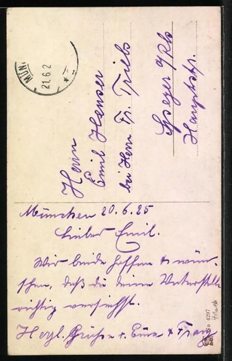 gelaufen 1925, Briefmarke entfernt, Eckknicke li. unten u. re. oben, guter Zustand