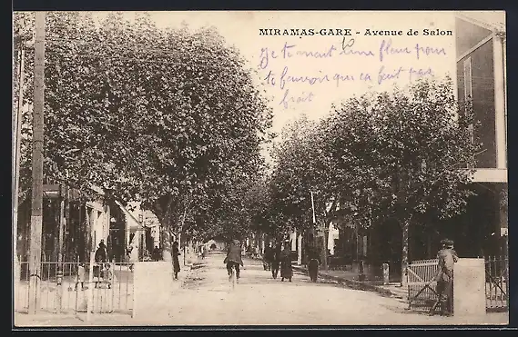 AK Miramas, Avenue de Salon animée avec passants et arbres