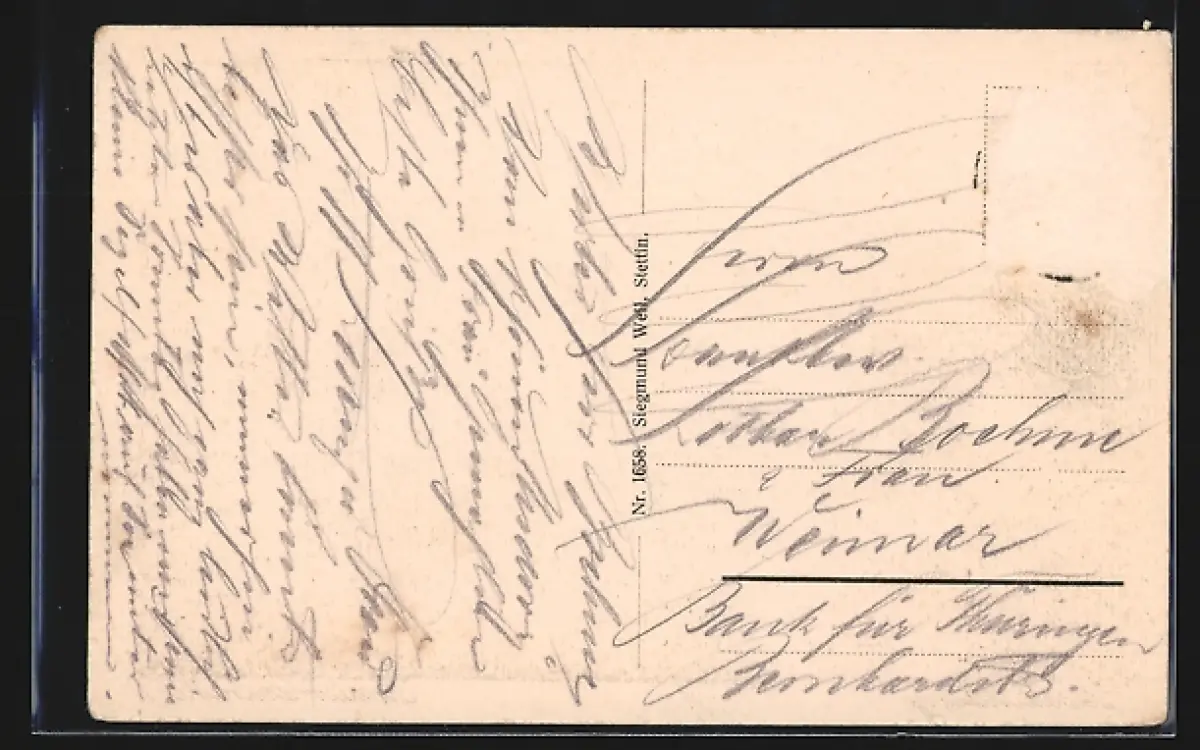 alte Ansichtskarte, gelaufen, Briefmarke entfernt, rückseitig Oberflächenschaden, sonst guter Zustand