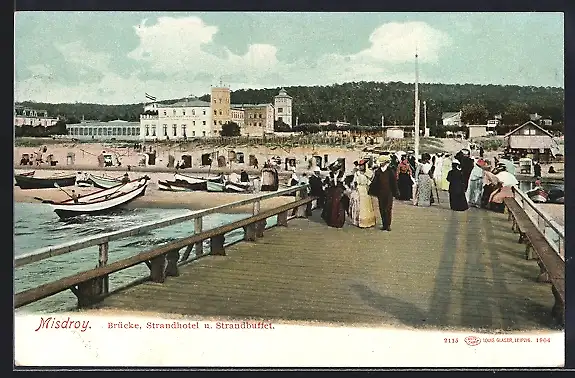 AK Misdroy, Strandhotel mit Strandbuffet und Brücke