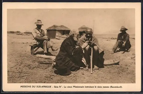 AK Missions du Sud-Afrique, Le vieux Missionaire instruisant le vieux mosuto