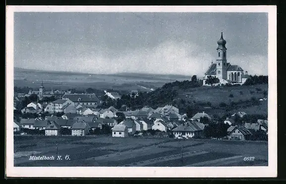AK Mistelbach, Teilansicht mit Kirche