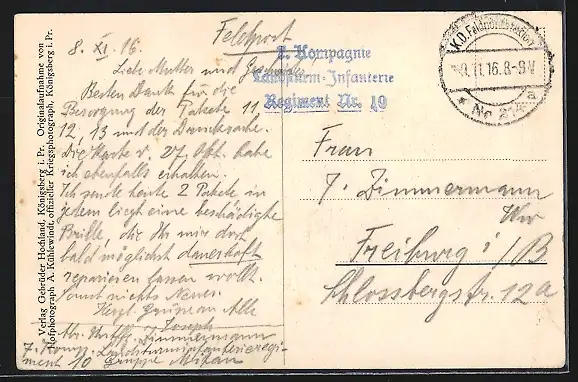alte Ansichtskarte, gelaufen 1916, Eckknick li. oben, guter Zustand