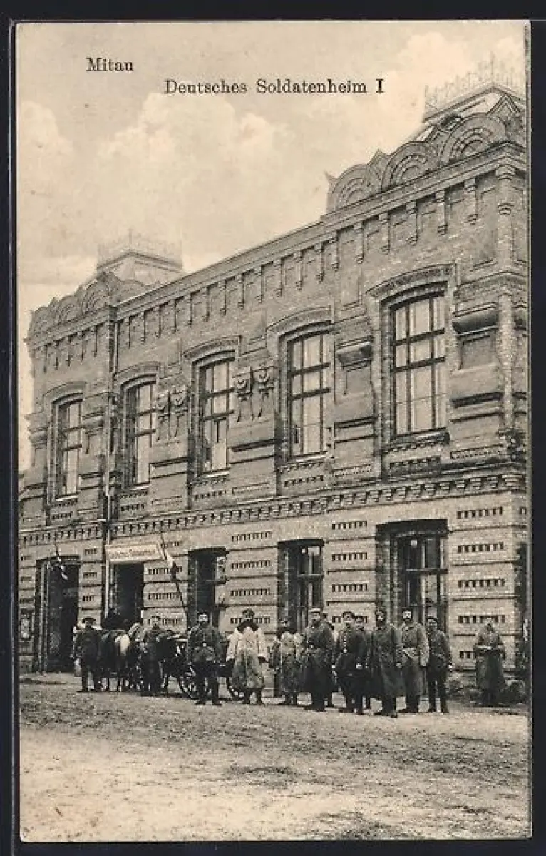 AK Mitau, Soldaten vor dem deutschen Soldatenheim I