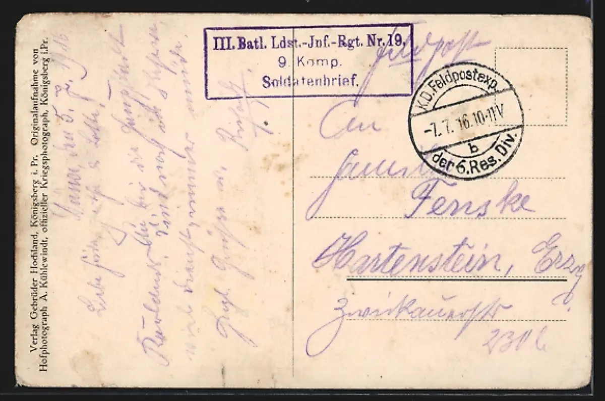 alte Ansichtskarte, gelaufen 1916, Eckknicke oben, kl. Einriss unten mittig, guter Zustand