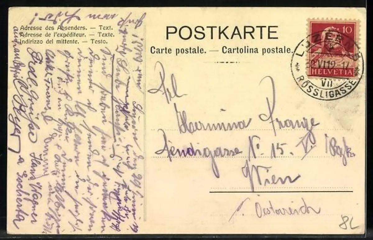 alte Ansichtskarte, gelaufen 1919, Bugspur re. oben, guter Zustand