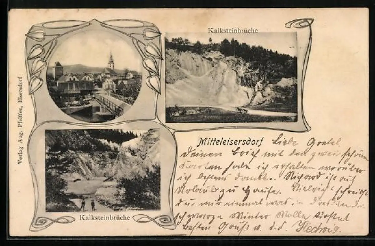 AK Mitteleisersdorf, Kalksteinbrüche, Ortsansicht mit Kirche