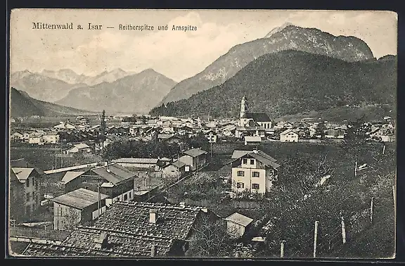 AK Mittenwald /Isar, Ortsansicht mit Reither- und Arnspitze
