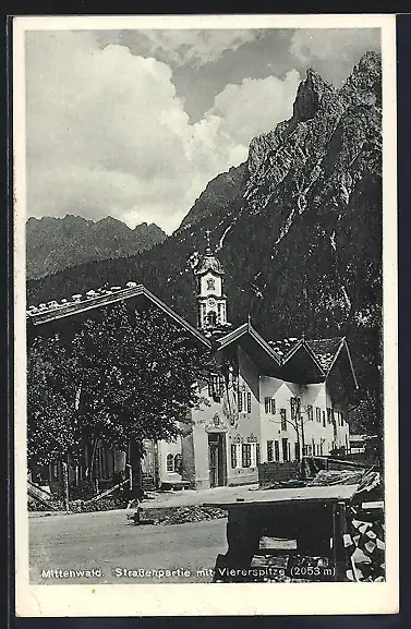 AK Mittenwald, Strassenpartie mit Viererspitze