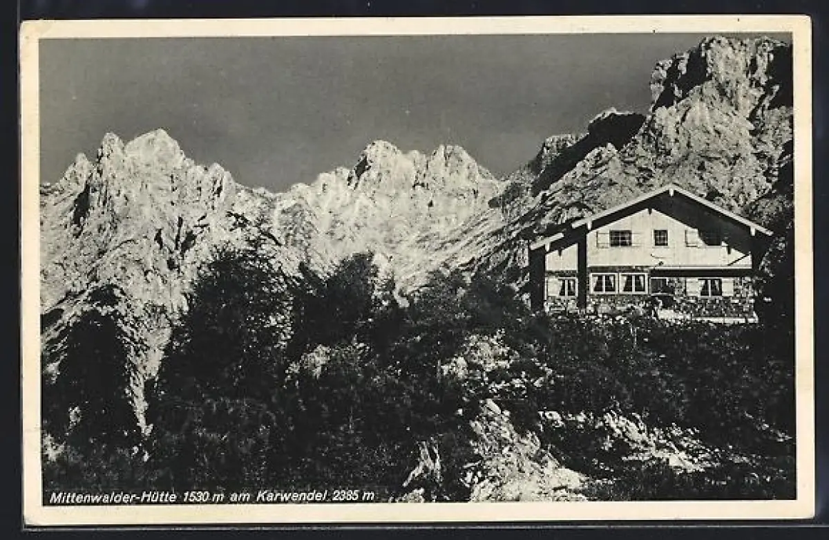 AK Mittenwalder-Hütte im Karwendel, Ansicht im Sommer