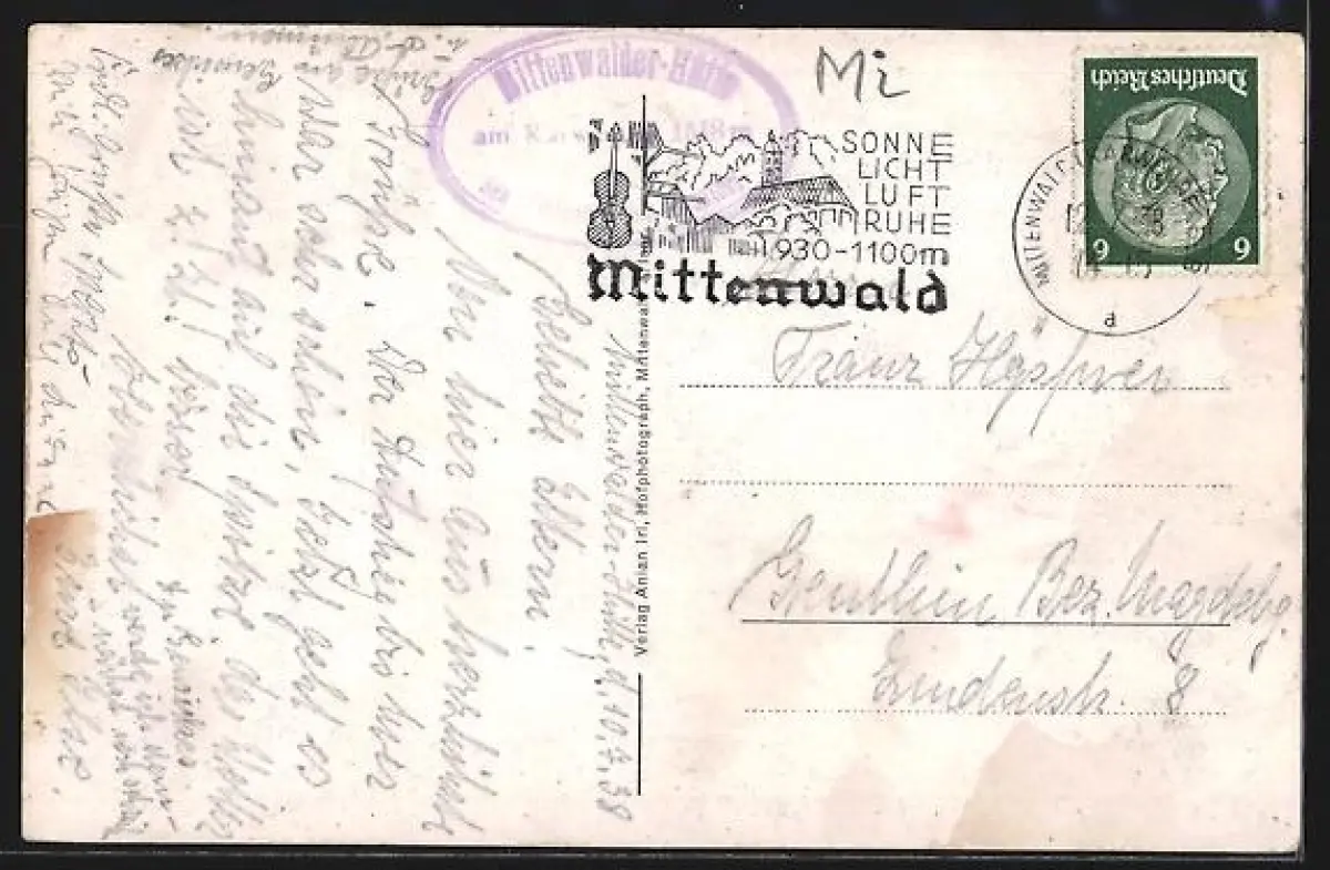 gelaufen 1938, rückseitig Oberflächenschaden, guter Zustand
