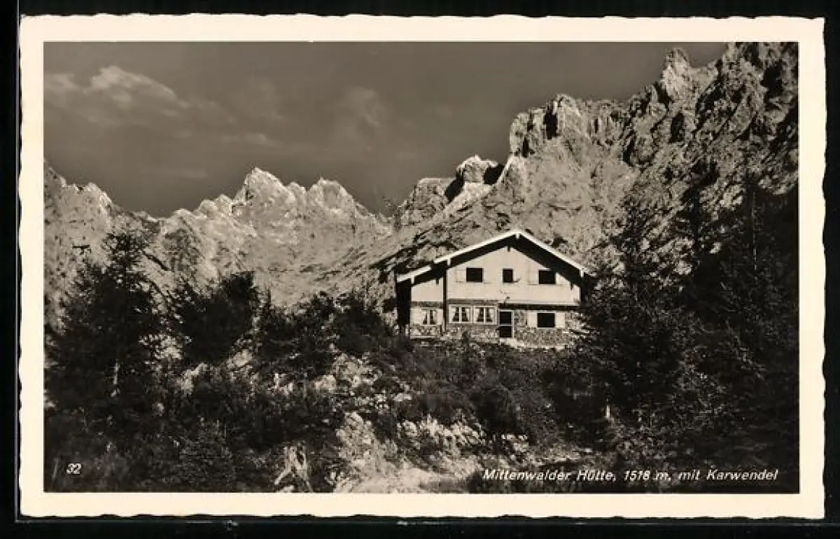 AK Mittenwalder Hütte mit Karwendel
