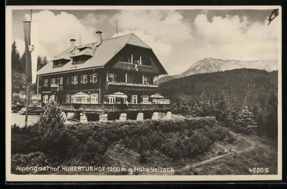 AK Mitterdorf im Mürztal, Alpengasthof Hubertushof gegen Hohe Veitsch