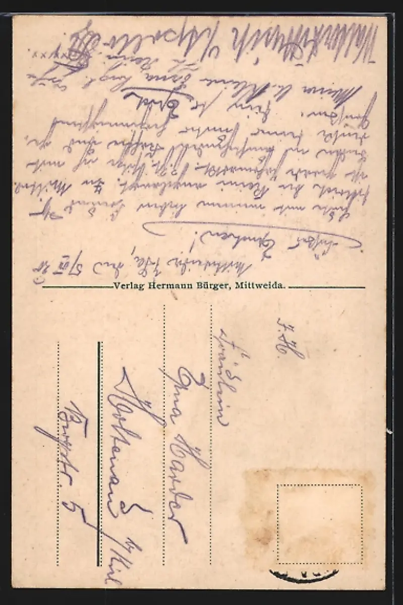 alte Ansichtskarte, gelaufen, Briefmarke entfernt, guter Zustand