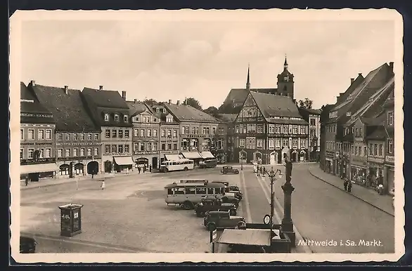 AK Mittweida, Marktplatz, Hotel Sächsischer Hof & Burgkeller