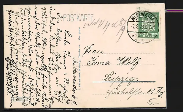 alte Ansichtskarte, gelaufen 1926, guter Zustand
