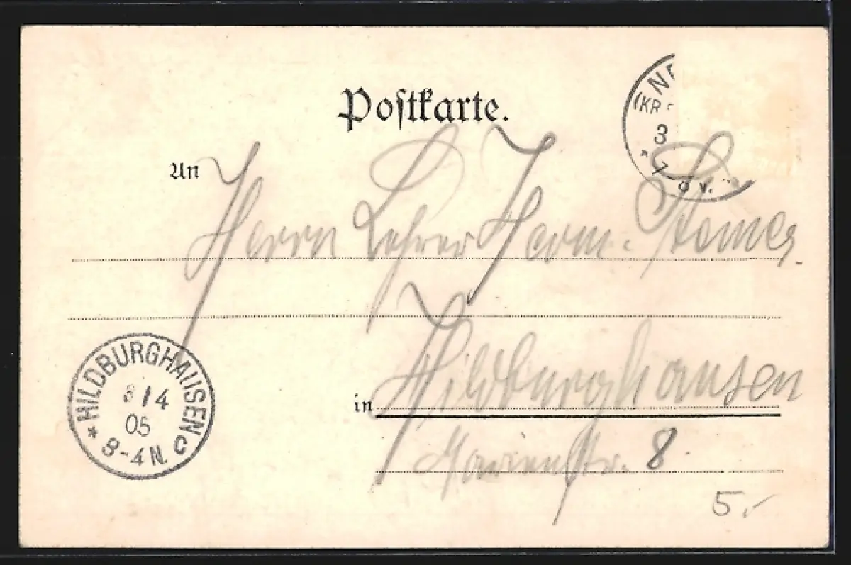 alte Ansichtskarte, gelaufen 1905, Briefmarke entfernt, guter Zustand