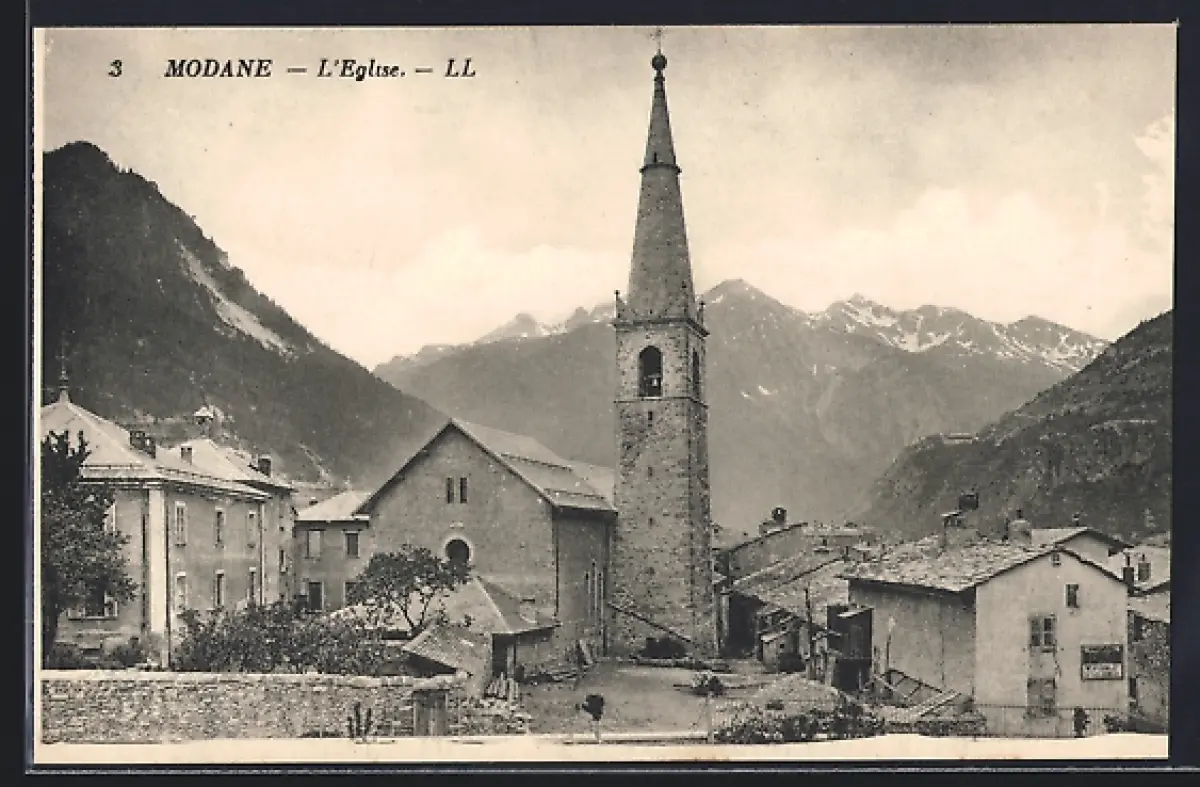AK Modane, L`Église et vue sur les montagnes environnantes