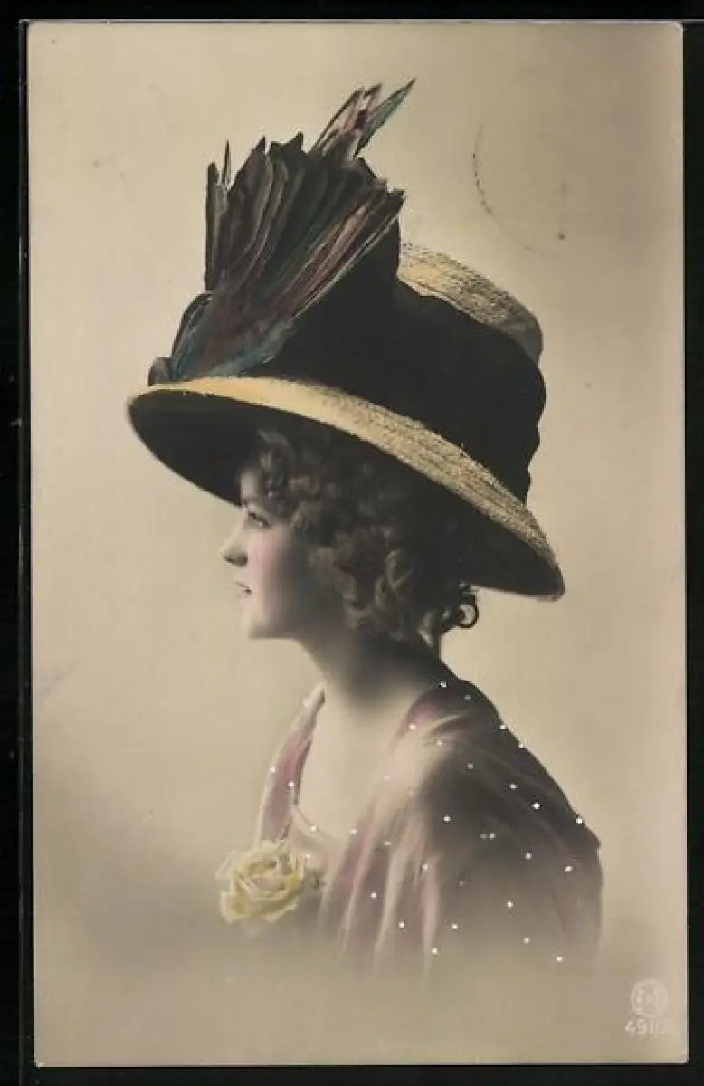 AK Mode Mode1909, Frau einen ausgefallenen Hut tragend